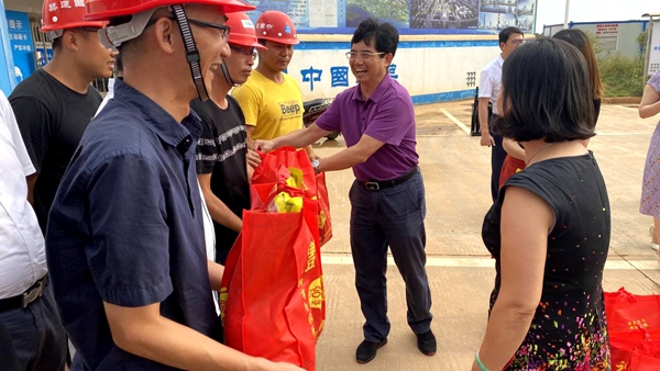 8月26日下午,区工委副书记黄学观先后来到融创文化旅游城、VR科创城走访慰问项目建设一线职工。黄学观副书记向相关负责同志详细了解了项目进度和建设情况,向高温酷暑下现场施工的职工们表示深切地慰问,真诚感谢一线职工为红谷滩新区经济发展做出的贡献。随后为他们送上了防暑降温慰问品。区经济发展信息局、区工会、区重大重点项目督查办相关负责同志陪同。