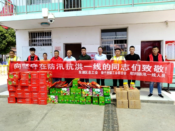 8月10下午,东湖区总工会常务副主席唐浩来到扬子洲镇的13个村,分别为每个村防汛点上坚守岗位的一线工作人员送上防汛慰问物品。今年我区防汛形势严峻,扬子洲镇的压力尤其大,在市总工会的大力支持下,区总工会及时将市总工会下拨的10万元防汛救灾慰问金下拨至扬子洲镇,镇工会联合会积极行动,及时采购慰问品,慰问防汛一线工作人员,得到了广大一线工作人员的好评。