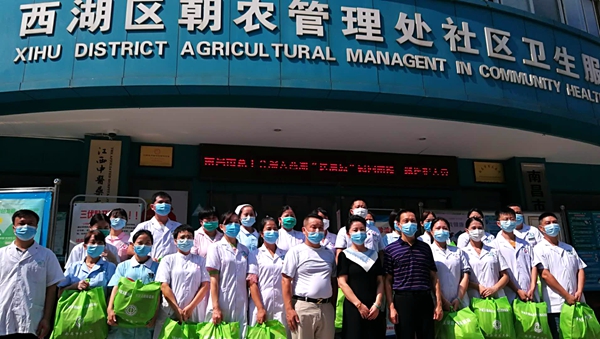 张小芳、陈绍国等为防疫一线医护人员给送上冰糖、绿豆、莲子、毛巾等防暑降温物品。对西湖区一线医护人员为西湖区战疫情取得的成绩和付出的努力给予了充分肯定,叮嘱他们注意休息、保重身体。