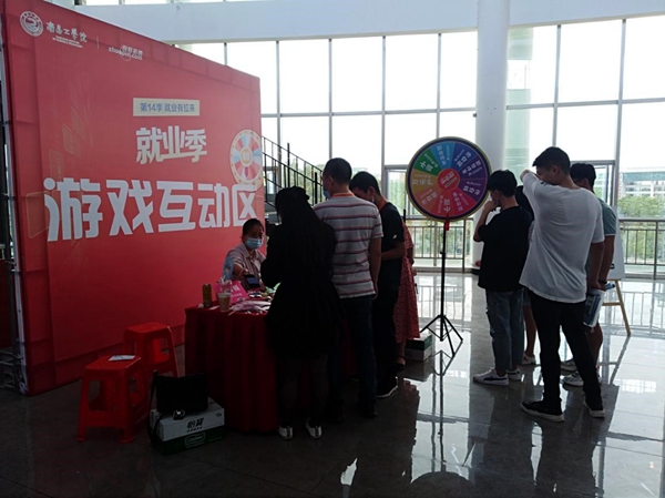 为促进人才留赣,提升大学生就业水平,今天上午,东湖区总工会联合区人社局、区就业局等部门在南昌工学院开展“南昌工学院2020届毕业生留赣就业校园招聘会”活动。因疫情影响,活动安排学生分批入场开展活动,但这丝毫不影响广大学生的应聘热情和企业招聘人才的迫切愿望。在本次活动中,共有46家企业参与现场招聘活动,提供岗位1000余个。其中,有高端科技等技术岗位,也有普通教育、物业等岗位,毕业生根据自身情况合理投递简历。据统计,有近2000名毕业生前来参加招聘会,并投递简历。活动现场还安排了生动有趣的抽奖活动,为前来应聘的学生提供丰富的奖品,也备受学生青睐。