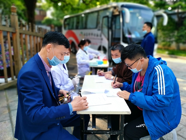 最近,南昌市滕王阁管理处党总支、工会,联合南昌市血防中心在景区开展主题为“热血助力,共抗疫情”的无偿自愿献血活动,大家踊跃参加,积极加入到无偿献血的队伍当中,除了滕王阁的员工外,还有南旅文化产业集团,游轮公司,的员工也积极加入到献血的行列中,有不少初次献血者或多或少地感到忧虑和紧张,管理处工会主动上前进行安慰,有效地缓解了献血者的紧张情绪,使整个献血过程都在轻松愉快的气氛中进行。