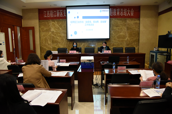 2020年4月17日上午,南昌经开区工会系统“战疫情、促消费、助发展”工作推进会在赣江新区支行二楼会议室举行。区工会以及各镇处工会、部分企业工会主席和干部参加会议。