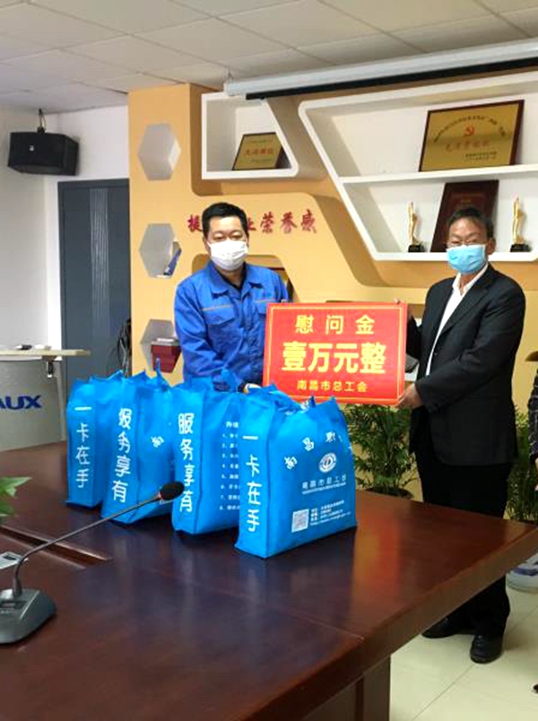 2020年3月24日上午,南昌市总工会调研员梅树华一行到南昌市奥克斯电气制造有限公司开展稳扎稳打防控疫情、助力企业复工复产慰问调研活动,区工会专职副主席刘燕陪同慰问调研。