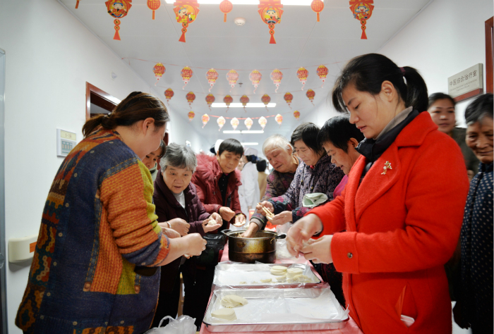 在病区内举办的“医患一家亲”活动中,医护人员将养生食材调入肉馅内,包裹进圆圆的面皮中,做成一个个具有“吉祥如意,喜庆团圆”寓意的水饺,大伙在品尝美味水饺的同时,也互相送出春节最早的健康祝福;在门诊大厅、血液净化中心,书法爱好者们聚精会神地书写春联,医护人员将写好的一副副春联赠送给患者和家属,并真心实意祝愿他们身体安康;猜灯谜活动环节中,医护人员别出心裁,将常见的中草药食材做成30个谜面,让患者在猜灯谜的同时,感受到中医药文化的独特魅力。