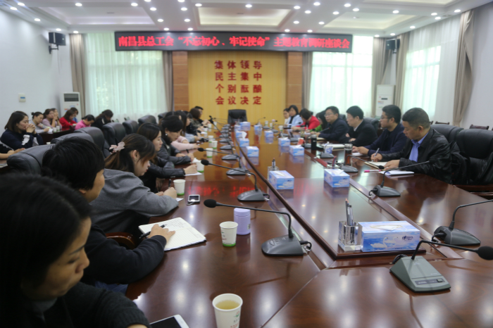 10月29日下午,南昌县总工会“不忘初心、牢记使命”主题教育调研小组在莲塘镇召开座谈会。南昌县人大常委会副主任、县总工会主席吴文卫带队,县总工会常务副主席徐安平,县总工会副主席欧阳文华等工会领导干部参会。莲塘镇党委负责人肖志勇,镇党委副书记、镇工会联合会主席涂洪亮等镇领导陪同调研。调研小组围绕“如何在社区开展工会服务工作”的主题,邀请了莲塘镇30名社区干部代表参会讨论,征求了参会代表关于工会工作的意见和建议。