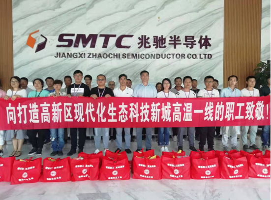 张霖一行先后来到江西兆驰半导体有限公司、南昌高新区人民医院建设项目部,对坚持在生产一线职工、建筑工人进行慰问,并发放绿豆、冰糖、蜂蜜、莲子等防暑降温物品;同时,详细了解了生产一线防暑降温设施、设备配备情况和防暑降温措施的落实情况,提出要进一步提高一线工作人员的劳动保护水平,切实保证生产和施工安全。
