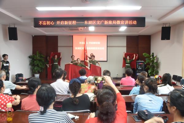 嘱托,声声入耳;壮志,念念于心。此次宣讲活动,结合文化工作实际,坚持以群众为中心,通过朗诵、快板、歌舞等表演形式,帮助广大党员干部和居民群众深刻领会习近平总书记视察江西时的重要讲话精神,具有很强的针对性和指导性。