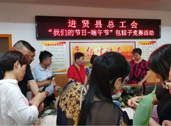 端午时节到,粽叶艾草香。2019年6月5日上午,为了弘扬中华民族优秀传统文化,进一步提升民族自豪感,让工会干部职工进一步了解传统节日、认同传统节日、喜爱传统节日、过好传统节日,进贤县总工会机关举办了“我们的节日—端午节”包粽子竞赛活动,县总工会全体干部参加了活动。