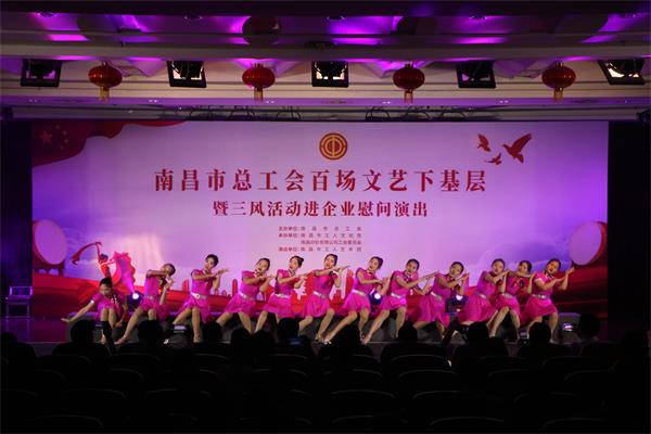 “中国梦·劳动美”百场文艺演出下基层活动是今年南昌市总工会服务职工20件实事之一。为进一步繁荣和活跃基层职工群众文化生活,从去年开始,市总工会就开始积极筹备,围绕新中国成立70周年、全国文明城市创建等主题重新创编了一台文艺节目。经过长达半年的紧张排练,在“五一”期间举行了首场演出,充分展现了南昌城市形象、展示了洪城职工风采,得到广大职工和社会各界的广泛好评。今年底前,全市各级工会将以“文艺轻骑兵”的方式,深入园区、深入企业、深入乡镇和社区开展120场文艺演出,为一线职工提供精神文化服务。