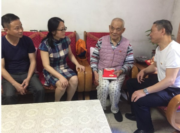 5月23日,公司党委委员、工会主席、第三离休党支部第一书记喻高龙,第三离退休党支部书记叶险峰一行前往看望住院离休干部武秀兰,同时为她过党员政治生日,并亲手佩戴党微,送上党员政治生日贺卡和《习近平的七年知青岁月》、《做一个政治上明白的人》等书籍。同时上门为离休干部林成彬、白占生、吕宪荣过了一个非常愉快的党员政治生曰。他们感谢公司党委的关心,认为这种上门在家过政治生日很接地气,这种关爱有温暖,他们格外高兴,表示将继续关注公司的发展。
