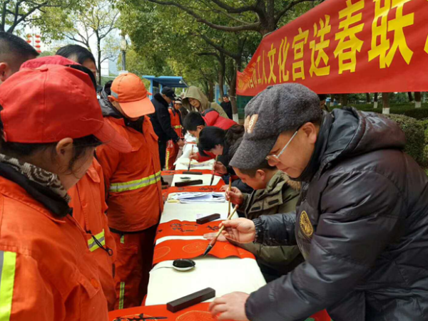 在新春佳节即将到来之际,为把党的关怀和温暖、把新春美好祝福送进千家万户。1月26日下午,南昌市工人文化宫邀请了省、市书法家和职工书法爱好者在市总工会大楼旁开展了“送新春 送祝福”免费送春联活动。