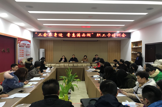 1月23日上午,西湖区总工会联合中国建设银行股份有限公司南昌西湖支行在人大代表履职活动中心会议室开展了“工会在身边 普惠满西湖”职工卡培训工作。西湖区总工会党组书记、常务副主席谢松筠主持本次培训会,全区共有40余名基层工会主席、干部参加培训。
