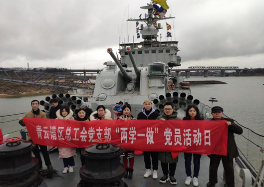 为深入开展“两学一做”学习教育,增强海权意识和国防意识,回顾改革强军的光荣历史,丰富业余文化生活,加强爱国主义教育,锤炼党性修养,2019年2月15日,区总工会党支部开展“弘扬八一精神,传承红色基因”参观南昌舰活动。