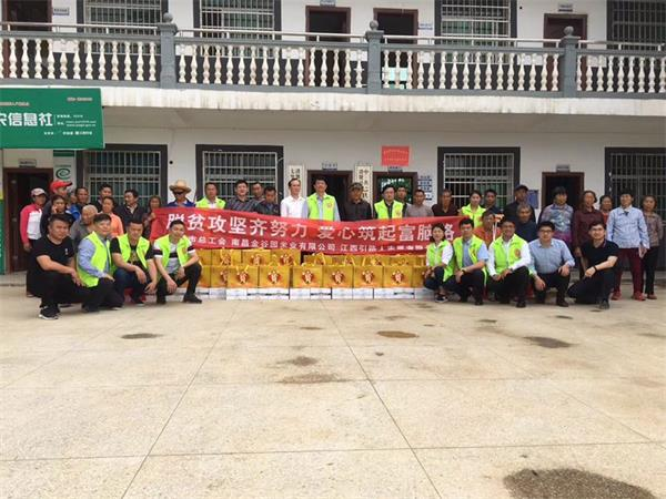 4月22日,南昌市总工会连心小分队、江西引路人志愿者服务社一行到进贤县七里乡寺背村,联合开展主题为“爱心筑起富脑路”的扶贫活动。江西引路人志愿社发起人陈朗如、徐友根、刘国勇,市总工会副主席、连心小分队队长邹循泷,七里乡政府乡长魏红平、爱心企业家南昌金谷园米业公司总经理刘芳坚,优秀村支书南昌县剑霞村支部书记刘伟平、东岗村支部书记夏有礼等参加活动。