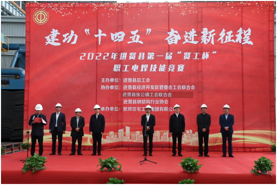 11月1日上午,由进贤县总工会主办的建功“十四五” 奋进新征程——2022年进贤县第一届“贤工杯”职工电焊技能竞赛在致邦住宅工业集团有限公司举行。县委常委、组织部长邓之武宣布比赛开始,县委常委、副县长、县经开区党工委第一书记徐永钢讲话,县人大常委会副主任、县总工会主席邓必勇主持开幕式,县总工会常务副主席陶致伟,县经开区管委会主任支小进,张公镇镇长雷春玲,县钢结构行业协会会长熊友春,致邦住宅工业集团有限公司董事长陈江红参加开幕式。来自全县32家钢构企业的70余名选手同台竞技。