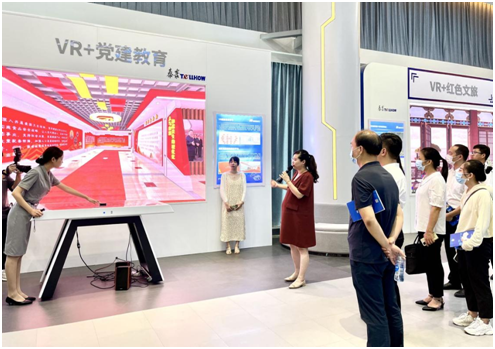 大家先后参观泰豪产业展馆、5G+VR数字经济体验馆,录音室、演播厅、学习教室等地方,并体验泰豪在VR+文旅、健康、党建、展陈等方面的应用成果。通过听讲解、观视频、亲体验了解了泰豪公司的发展路程及改革成果。