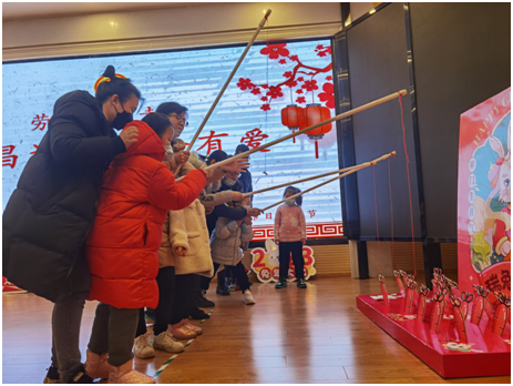为深入贯彻落实党的二十大精神,弘扬中华民族优秀传统文化,进一步强化服务职工意识,切实做好对职工家庭的人文关怀。1月15日上午,南昌县总工会在南昌县工人文化宫组织开展“留昌过年工会有爱”迎新春主题活动。