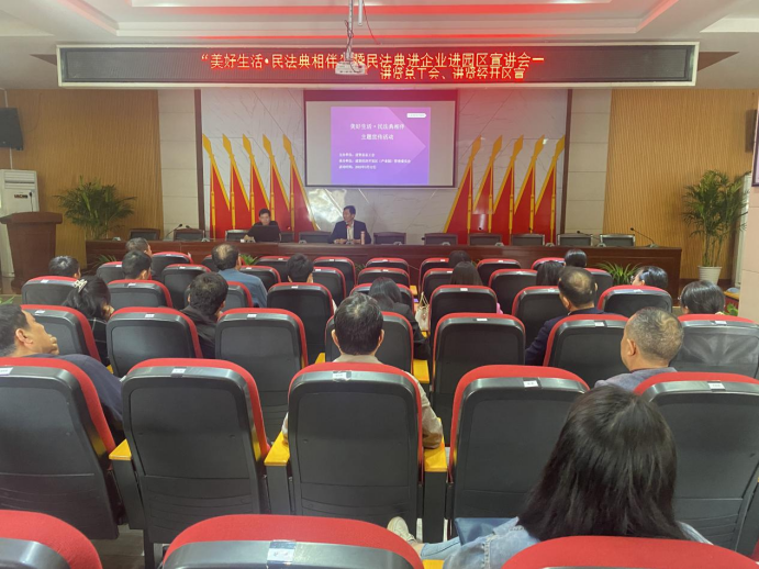5月12日上午,进贤县总工会在进贤经济开发区(产业园)管理委员会多媒体会议室开展“美好生活·民法典相伴”主题宣传活动。县总工会党组成员、副主席陶表平,进贤县职工权益维护中心法援律师陈登朝,县经开区60家企业职工代表参加活动。进贤县经开区管理委员会党工委员、副主任朱德平主持宣讲活动。