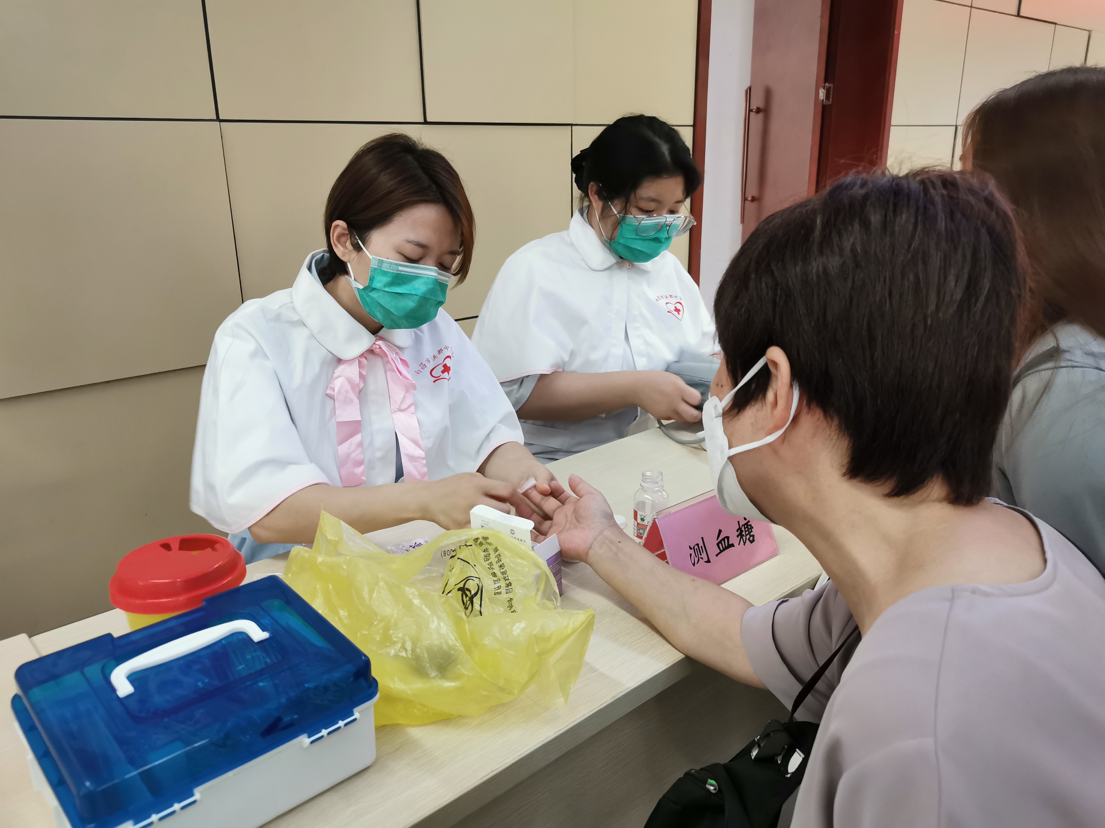 义诊现场,骨伤八科足踝医师们细心地为慕名前来就诊的患者免费诊疗,他们详细询问病史、认真阅读分析患者检查结果,并给予合理化的诊疗建议,耐心细致地为患者讲解足踝疾病的治疗方法与预防保健知识,为确有需求的患者免费赠送药品。同时,护理人员也免费为患者测血压、血糖。
