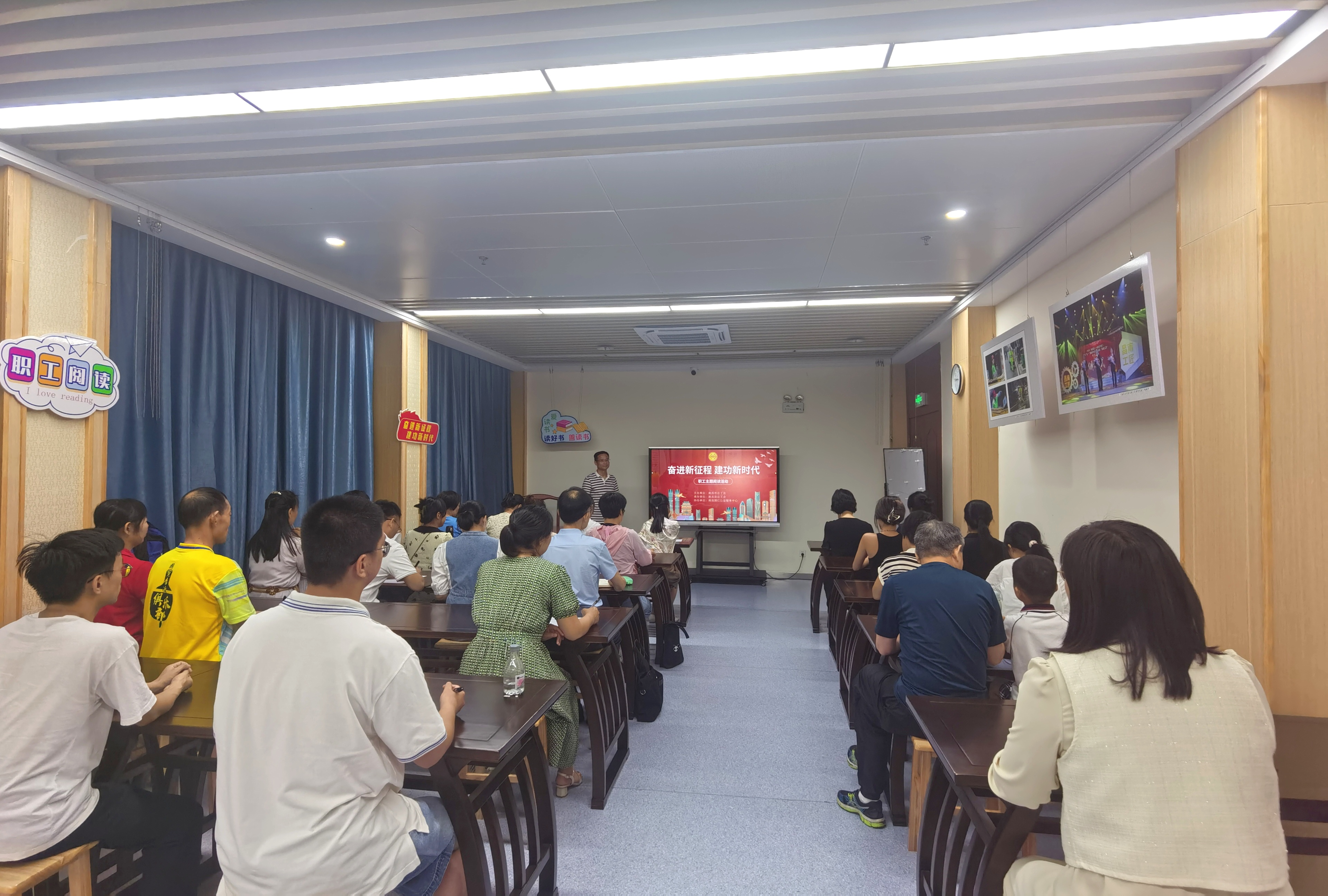5月31日,南昌县总工会在县工人文化宫举办“奋进新征程 建功新时代”职工主题阅读活动,全县30余名职工参加活动。