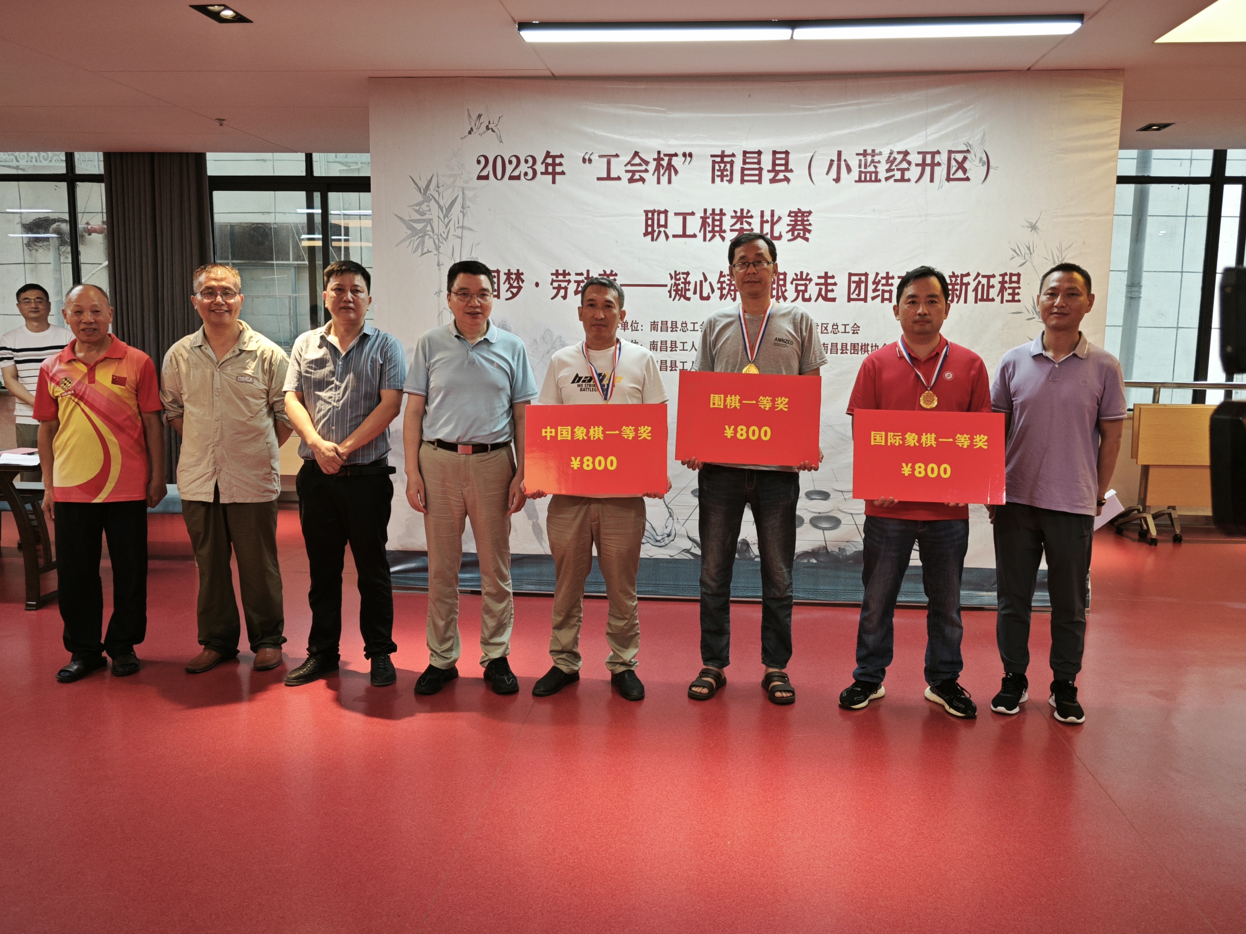 为进一步丰富广大干部职工文体生活,增进职工身心健康和展示职工积极向上的精神风貌,6月23—24日,2023年“工会杯”南昌县(小蓝经开区)职工棋类比赛在南昌县工人文化宫顺利举行。县人大常委会党组成员、副主任,县总工会党组书记、主席黄华明给获奖个人颁发奖牌、证书。
