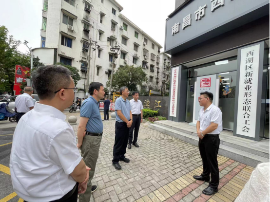 6月30日上午,中华全国总工会基层工作部副部长汤洪伟、规范指导处处长孙向南、基层组织建设处二级主任科员窦学伟一行赴西湖区新就业形态联合工会,调研新就业形态群体建会入会工作。省总工会一级巡视员吴海平,基层工作部部长、一级调研员王根泉,市总工会党组副书记、分管日常工作的副主席熊绍群,区委常委、组织部部长李隽陪同。