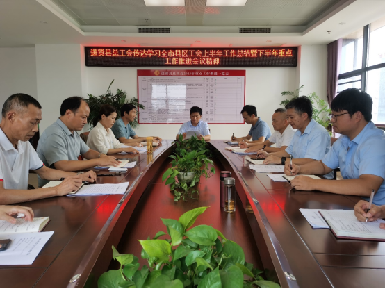 7月25日上午,进贤县总工会召开上半年工作总结暨下半年重点工作推进会,全面总结工会上半年工作成果,深入分析查摆工作中存在的问题不足,安排部署下半年的重点工作,县人大常委会副主任、县总工会党组书记、主席邓必勇出席并讲话,县总工会全体班子成员及各部门负责人参加会议。