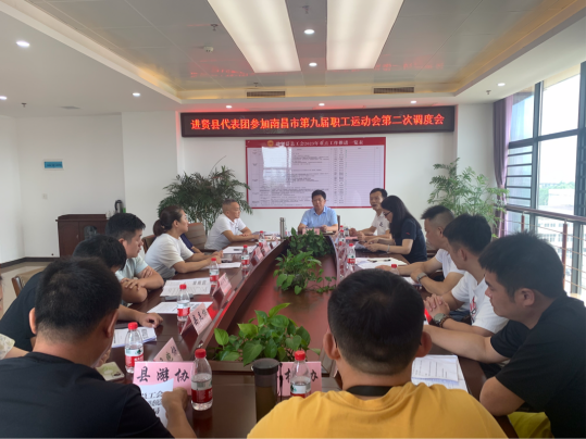 7月21日上午,进贤县总工会组织召开进贤县代表团参加南昌市第九届职工运动会第二次调度会,县人大常委会副主任、县总工会党组书记、主席邓必勇出席会议并讲话,县总工会党组副书记、分管日常工作的副主席陶致伟主持,县总工会党组成员、经审会主任夏耀辉、县教体局四级主任科员陶慧珍及9个协会的负责同志参加会议。