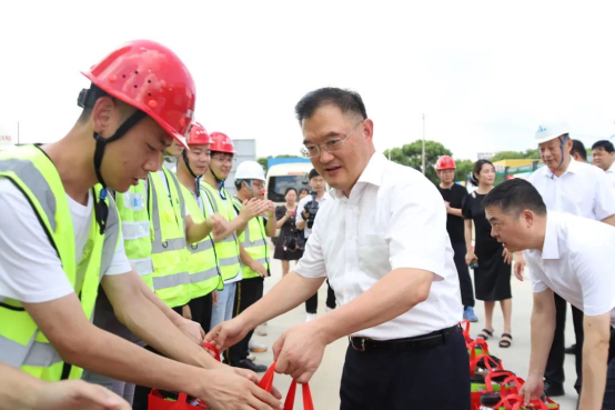 在海凭国际·南昌高端医疗器械产业园项目和保利中航城四期项目现场,叶修堂向坚守在工作岗位上的一线建筑工人表示感谢。他说,建筑工人是最美劳动者,青云谱的城市建设与发展离不开建筑工人的辛勤劳动。他强调,主管部门和施工单位要安排好施工时间,落实好防暑降温各项措施,让大家以饱满的精神状态投入到工作中,保质量保证进度保安全地完成项目建设任务。