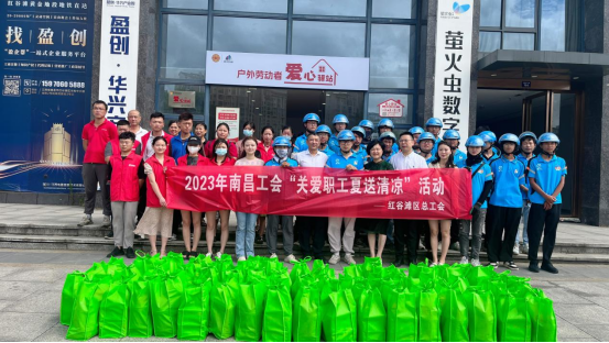 为切实做好高温下一线职工的健康服务和保障工作,7月28日上午,南昌市总工会三级调研员钟东一行赴红谷滩区开展2023年“关爱职工 夏送清凉”活动,为工人、快递员、外卖员送去“清凉礼包”。区人大常委会党组成员、副主任、区总工会党组书记、主席王瑞芳陪同。