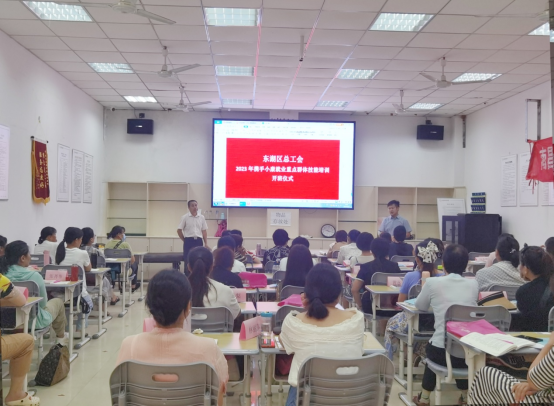 7月22日,东湖区“携手小康”就业重点群体技能培训班在南昌市倍邦职业培训学校正式开班。培训为期5天,以“理论培训 + 实操学习”的教学方式,为50余名学员提供母婴护理相关知识。