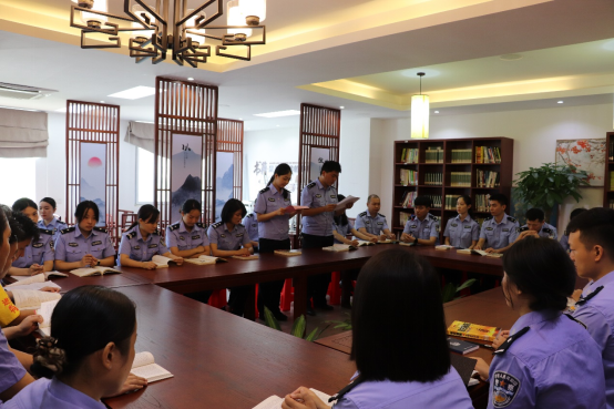 读书分享环节,推荐的书目既有启迪心灵、催人奋进的《习近平的七年知青岁月》,也有让我们用法律思维走出偏见和迷茫的《法治的细节》,更有红色经典诵读《不忘初心,永远跟党走》抒发了党员民警对党和国家最崇高的敬意和最深的眷恋。