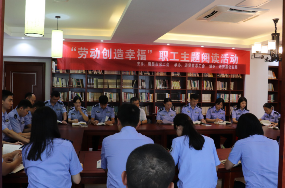 8月18日上午,进贤县总工会在县公安局职工书屋开展“劳动创造幸福”职工主题阅读活动,引导全体民辅警们养成读书习惯,进一步激发大家的读书热情、家国情怀和拼搏实干精神,县公安局民辅警共计35人参加阅读活动。