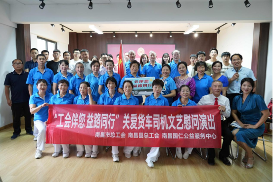 8月29日上午,由南昌市总工会主办、南昌县总工会承办、南昌国仁公益服务中心协办的“工会伴您 益路同行”关爱货车司机文艺慰问演出在小蓝传化物流园举行。