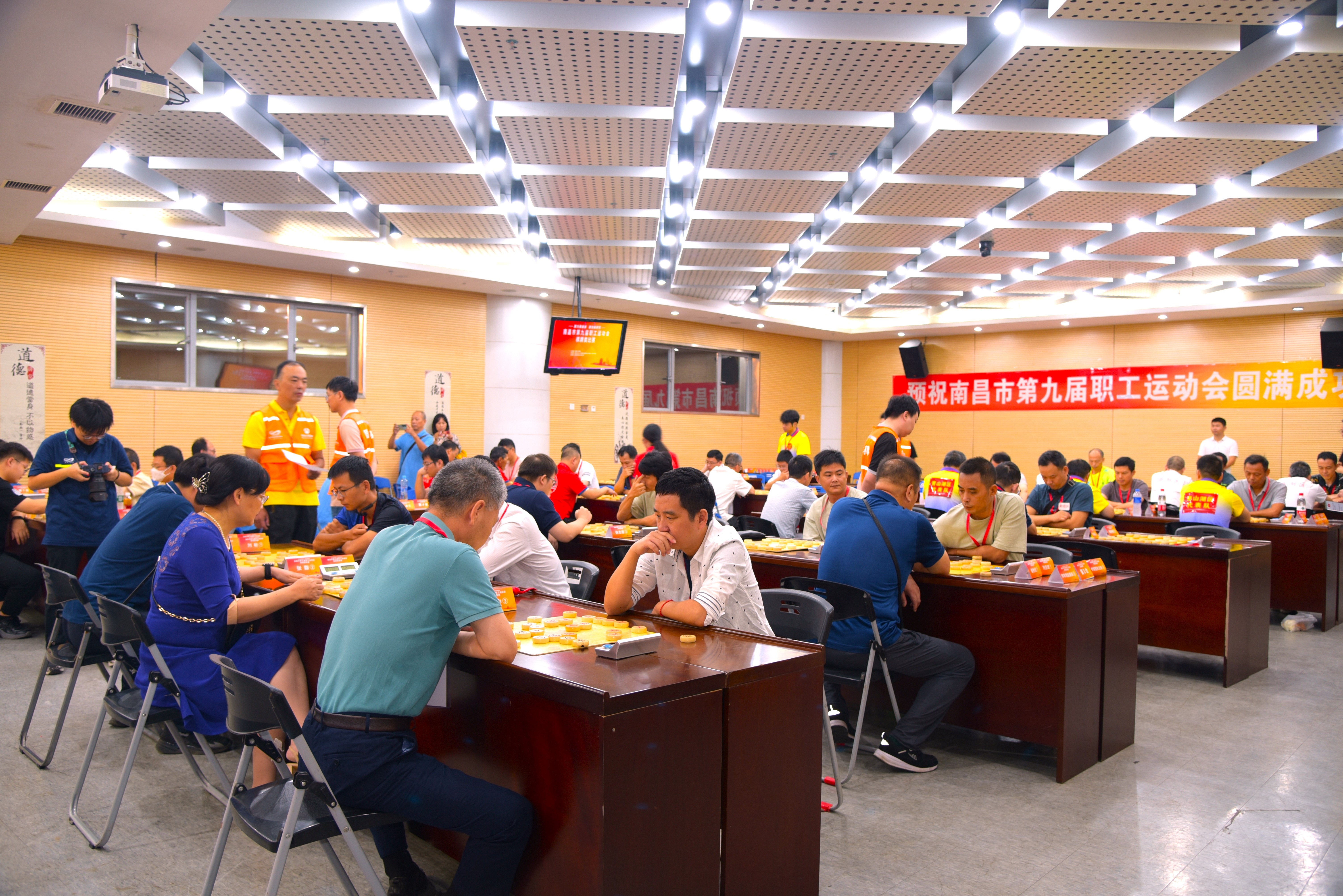 棋牌类作为本次运动会首个比赛项目,于9月1日至5日在南昌国际体育中心体育场新闻发布厅、体育馆新闻发布厅同时举行。来自全市各县区、开发区、湾里管理局、市委各部门、市直各单位、产业工会、行业工会、系统工会和大中型企业集团的99支队伍454名运动员参加了比赛。经过五天的激烈角逐,西湖区、进贤县、新建区代表队获得象棋团体赛前三名,高新区、青云谱区、江铃集团代表队获得围棋团体赛前三名,进贤县、市财政局、市审计局代表队获得牌类拖拉机双人赛前三名。