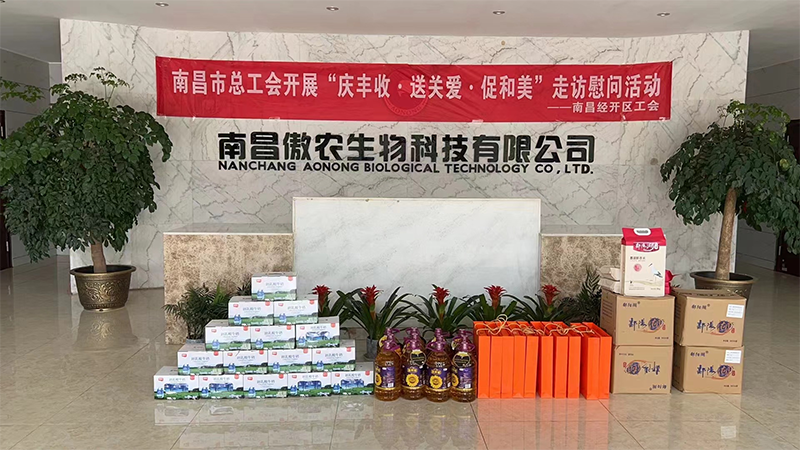 9月25日上午,南昌市总工会到南昌傲龙生物科技有限公司开展“庆丰收 送关爱 促和美”走访慰问活动,把党和政府以及工会组织的关怀送到农民工的心坎上。
