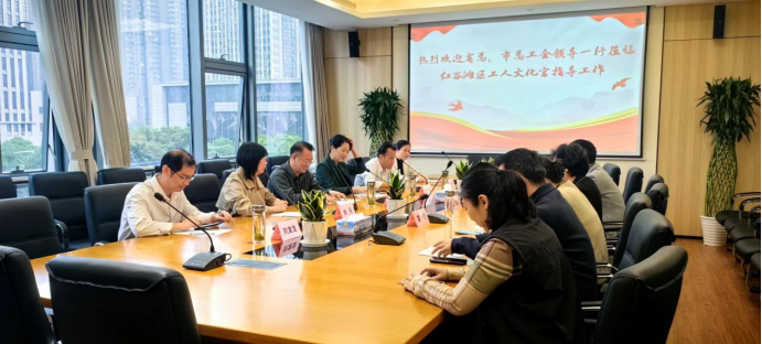 在随后的座谈会上,听取了红谷滩区工人文化宫从购置产权、立项建设、资金筹措、运营管理等方面的汇报,并重点围绕工人文化宫的建设和运营进行了深入探讨。