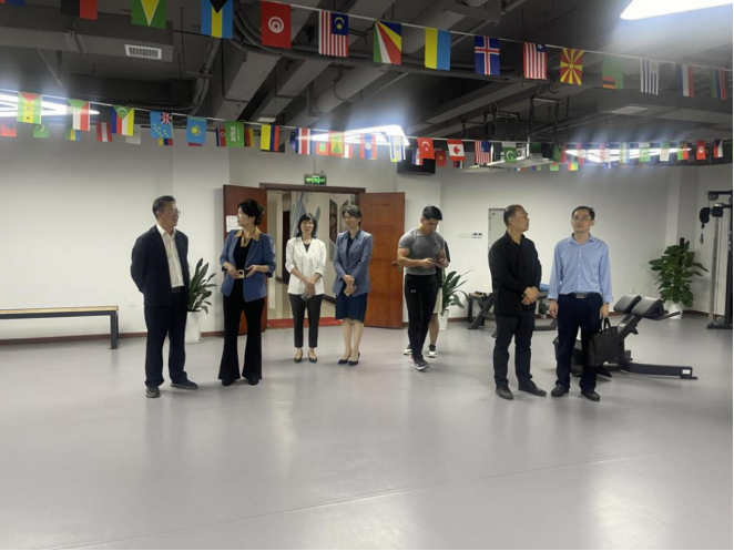 图为:程其瑜一行调研青山湖区工人文化宫职工健身房