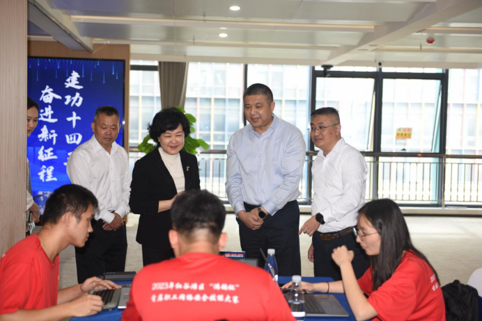 仪式现场播放了本次大赛的宣传片,介绍了本次大赛的活动宗旨、比赛形式和参赛队伍等情况,王瑞芳在致辞中指出,红谷滩区作为全省“五个中心”,是全省数字经济发展的前沿阵地,希望通过举办职工网络安全技能大赛,切实提升我区网络安全领域产业工人的劳动素质和技能水平,助推我区构建安全、健康、有序的网络空间,充分激发广大职工围绕数字经济发展建功立业的劳动热情和创造激情。随后邓林和同与会人员共同开启了大赛启动屏,并前往比赛现场观摩了职工竞技比拼的实况。