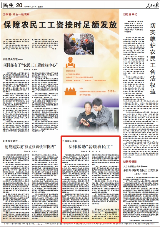 1月5日,《人民日报》发表题为“保障农民工工资按时足额发放”的报道,展现各地各部门采取有力措施根治欠薪,维护农民工合法权益。其中,南昌县、西湖区总工会维权服务工作受到关注。
