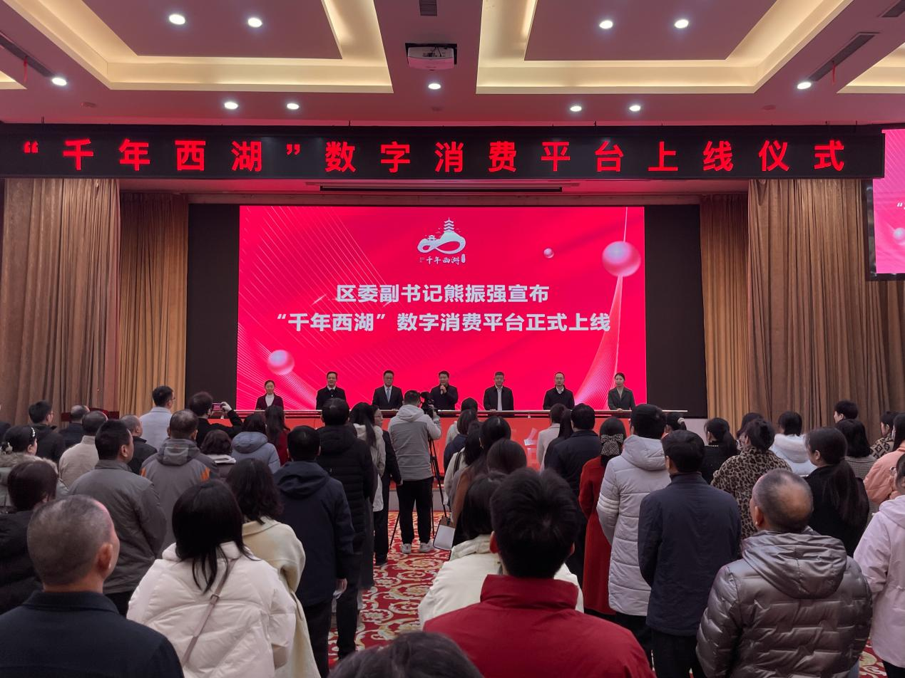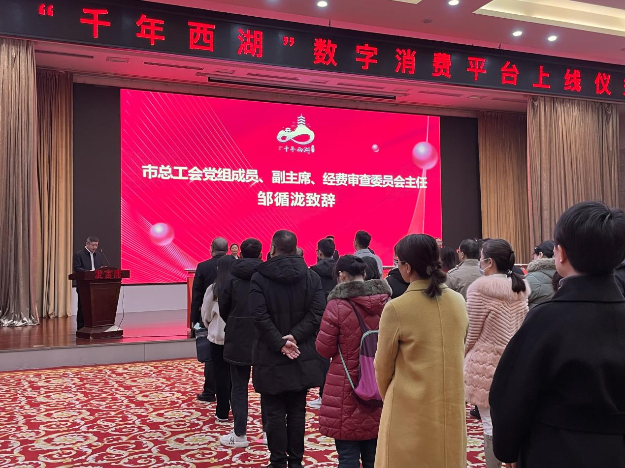 1月10日上午,“千年西湖”数字消费平台上线启动仪式在西湖区行政中心顺利举行。市总工会党组成员、副主席,经费审查委员会主任邹循泷致贺词,西湖区委副书记熊振强宣布启动,区委常委、区政府党组成员、副区长吕东锦,区政府党组成员、副区长凌婧,区政协副主席陈小青出席,区人大常委会党组副书记、副主任,区总工会党组书记、主席陈绍国主持,共同见证了由西湖区总工会、区商务局共同引进,江西福权网络科技股份有限公司负责承建的“千年西湖”数字消费平台上线的高光时刻。
