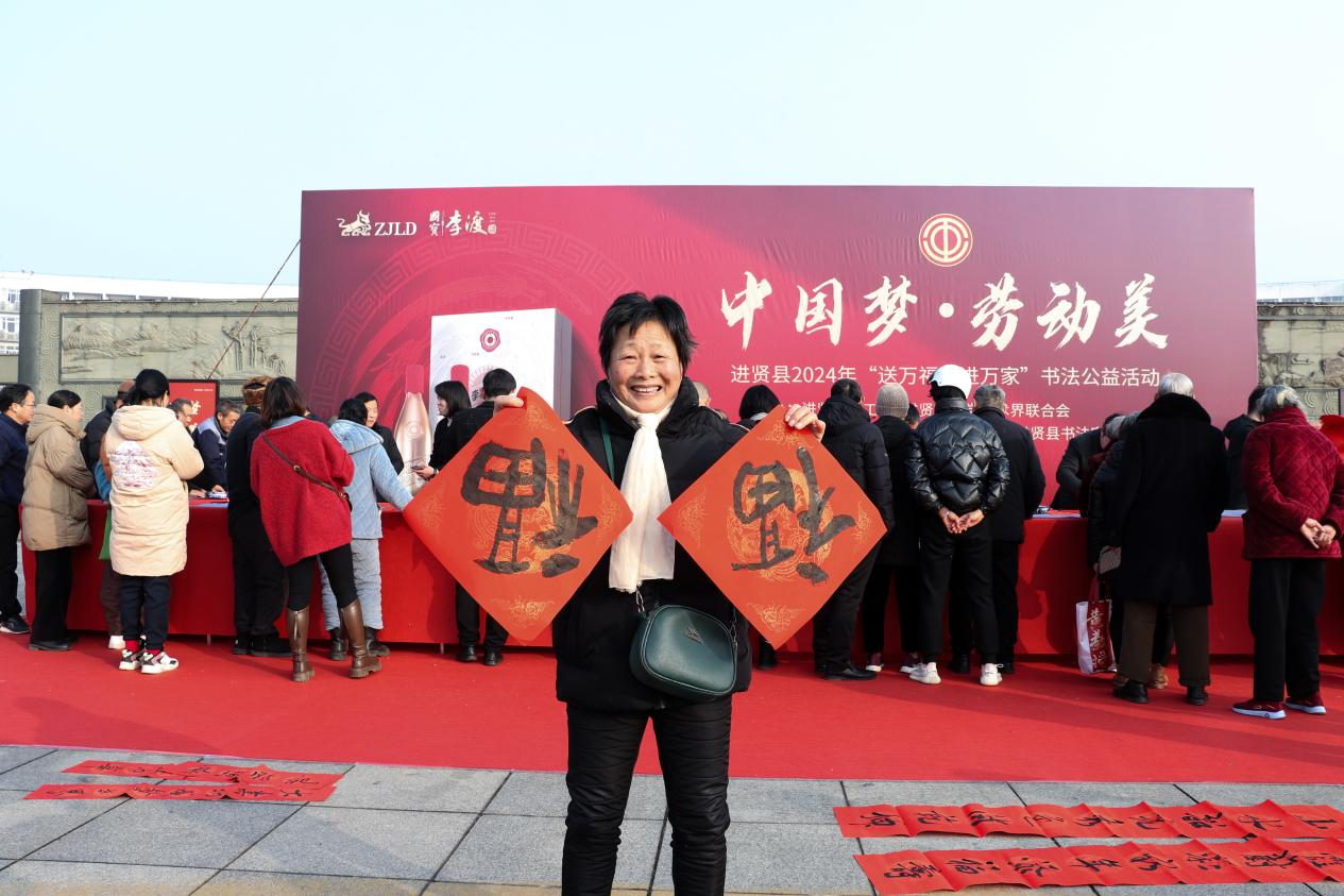 妙笔生花添瑞气,翰墨留香迎新春。为深入学习贯彻落实党的二十大精神,弘扬中华优秀传统文化,进一步丰富我县广大职工群众文化生活,在新春佳节到来之际,1月16日上午,由县总工会、县文学艺术界联合会主办,县工人文化宫、县书法家协会、李渡酒业承办的“中国梦 劳动美”进贤县2024年“送万福、进万家”书法家公益活动在县政府广场举办。县委常委、宣传部长吴庆和出席活动,县总工会党组副书记、分管日常工作的副主席陶致伟,县委宣传部一级主任科员、县文联主席颜爱英等陪同参加。