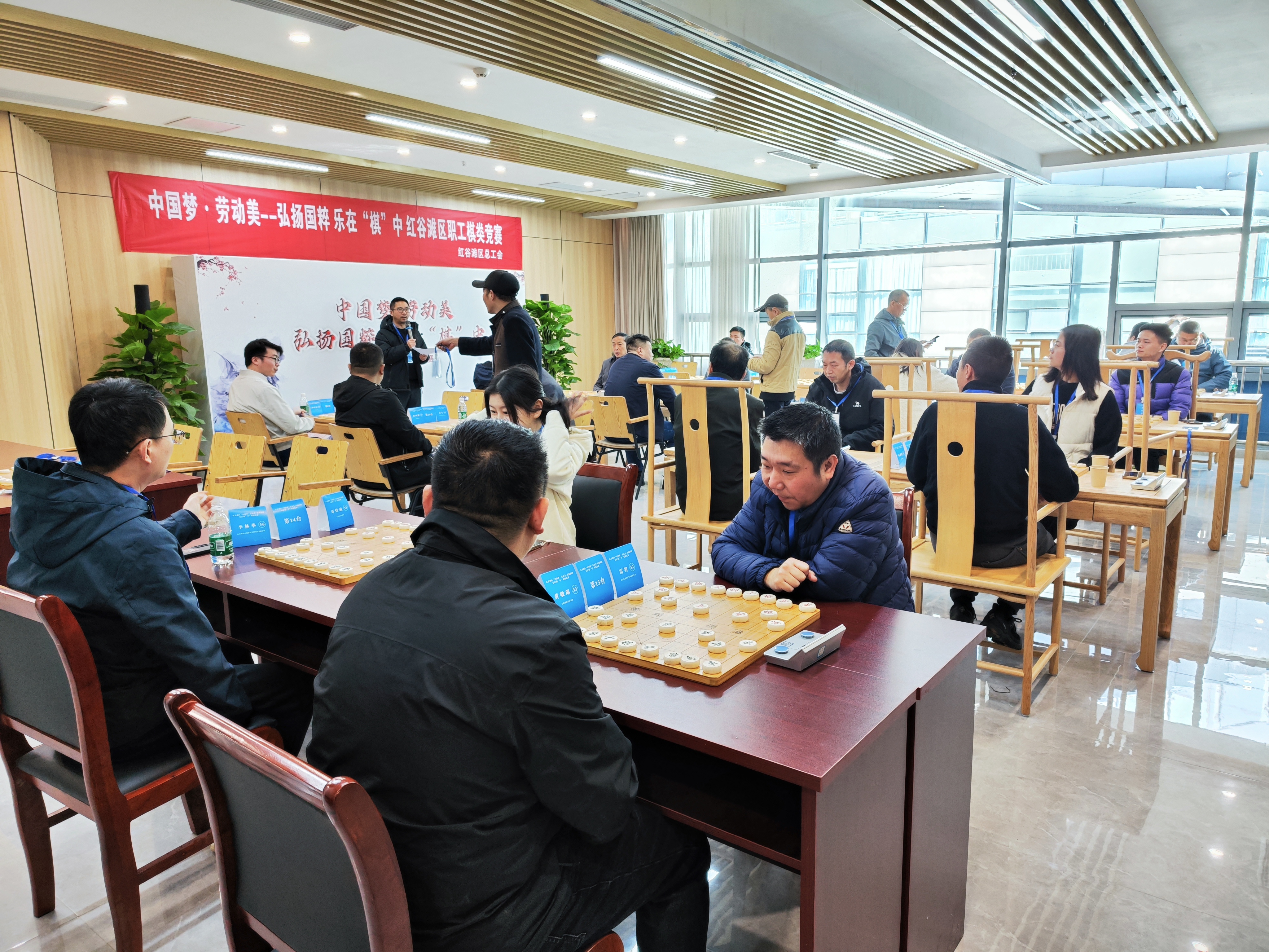 3月20日至3月21日,“中国梦·劳动美--弘扬国粹 乐在棋中”红谷滩区职工棋类竞赛在区工人文化宫举行,本次比赛共设置了中国象棋、围棋两项个人赛,吸引了全区各机关、企业、事业单位职工近百人齐聚一堂,切磋棋艺。