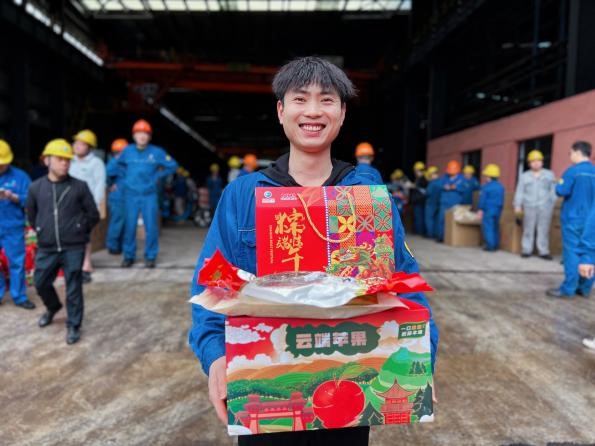 新入职方大特钢焦化厂的刘寒此时感到非常幸福,开心地说:“这是我第一次收到企业发放的端午节福利。非常感谢集团董事局的关心与关爱,在今后的工作中,我会更加努力,不断提升业务技能,在岗位上尽职尽责,与方大特钢的同事们一起,像赛龙舟的勇士一样,齐心协力、奋力前行,在赛道上再创佳绩!”