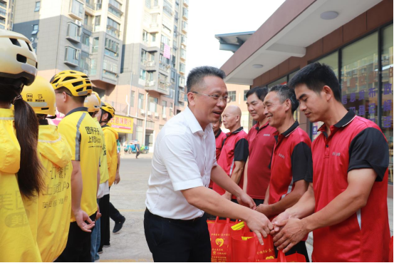 在新就业形态户外劳动者工会驿站,叶飞关切地询问外卖员、快递员的工作时间和劳动强度,详细了解他们的工作和生活情况,对他们不畏高温、坚守岗位的敬业精神表示衷心的感谢,并为他们送上了防暑降温物品。希望大家在做好工作的同时,一定要注意防暑降温,合理安排工作时间,确保自身安全和健康。