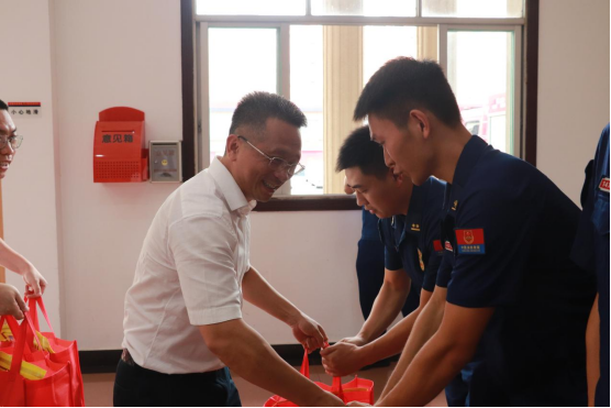 在县消防救援大队,叶飞向长期备战在火灾扑救及紧急救援前线的全体消防救援人员表达了由衷的敬仰,对全县消防队伍无惧高温、执着守护民众生命财产安全的辛勤付出给予了充分肯定。他强调,炎热的夏季正是火灾频发的时节,各位消防员在恪守岗位之余,也要加强个人安全防范的意识,注重防暑避暑,保重身体,保持良好的精神状态,为我县社会稳定贡献消防力量。