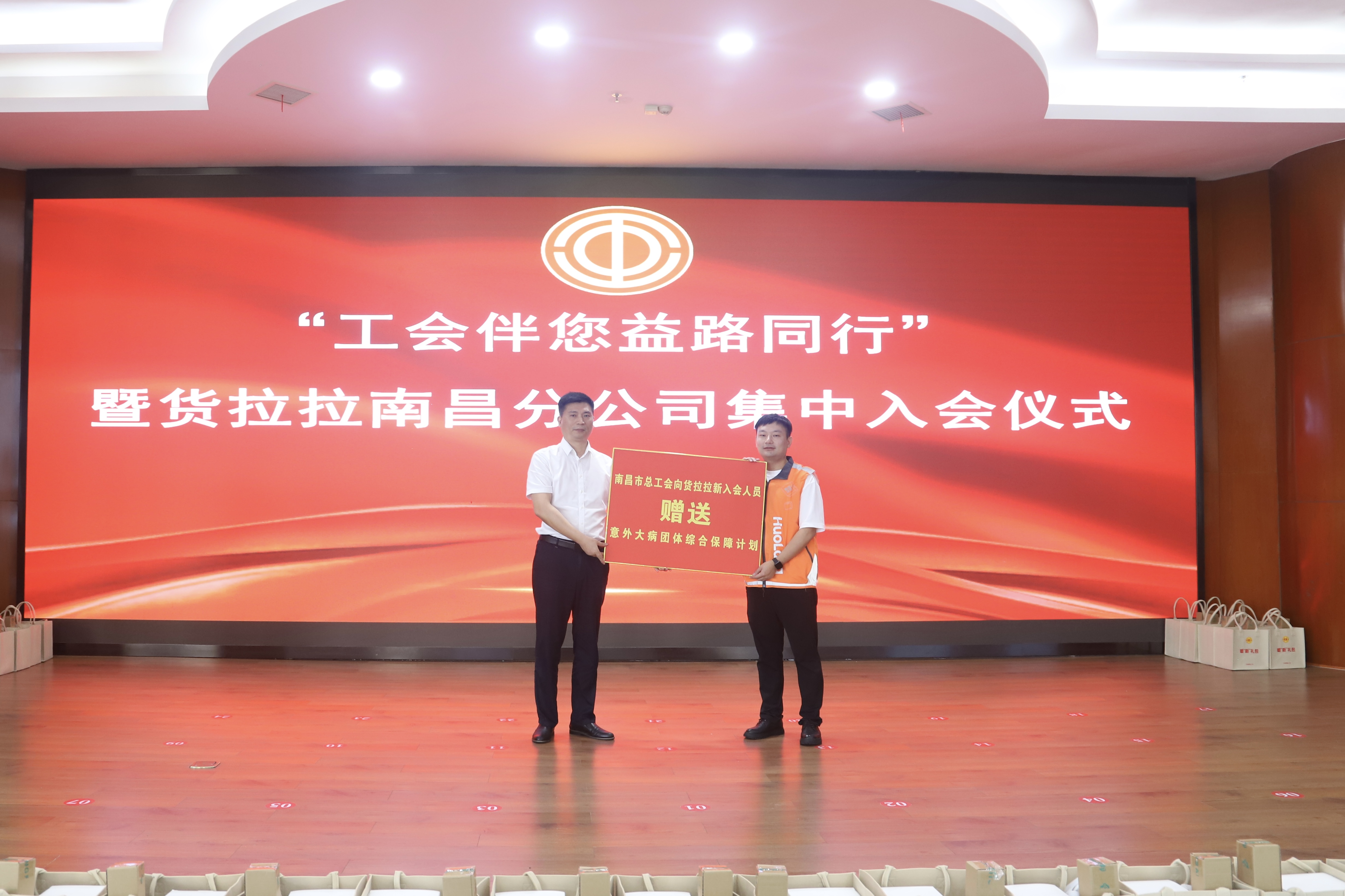 8月16日,由江西省总工会指导、南昌市总工会主办的“工会伴您益路同行”暨货拉拉南昌分公司集中入会仪式在南昌市青山湖区工人文化宫举行。省总工会一级巡视员吴海平为货拉拉南昌分公司工会委员会授牌,全总社会联络部派员致辞,市总工会党组副书记、分管日常工作的副主席熊绍群发表讲话,市总工会四级调研员张霖、货拉拉公司党委副书记吴晓春出席活动。