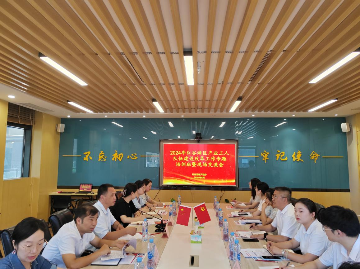 为推动红谷滩区新时代产业工人队伍建设改革工作走深走实。8月5日下午,2024年红谷滩区产业工人队伍建设改革工作专题培训班暨现场交流会在江西慧谷产业园举行,区委组织部、区人社局、区科工局、区总机关、区产改试点企业等相关负责同志参加。