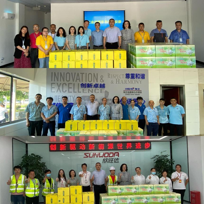 邓林和一行先后来到费森尤斯卡比(南昌)医疗器械有限公司、南昌海立电器有限公司、南昌欣旺达新能源有限公司,对企业一线工人在高温酷暑下辛勤工作表达了崇高敬意,对他们兢兢业业的工作态度给予了肯定,并殷切叮嘱他们在做好工作的同时,一定要加强自身防护,做好防暑降温措施,切实保障自身健康与安全,并为职工们送上清凉礼包。