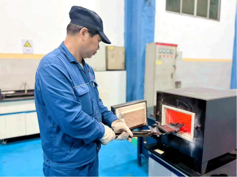 走进物理站丙班,班组职责清晰可见:负责弹簧扁钢、热轧带肋钢筋、连铸坯等试样加工与物理性能检测,开具产品质量证明书,承担产品开发和质量异议的检测工作。“我们就是产品质量‘把关人’。”班长陈鹤说,“每一组数据都直接影响生产工艺调整,容不得半分马虎。”正是这份清醒的认识,让丙班在日常工作中始终坚守“按标准检测,用数据说话”的理念。